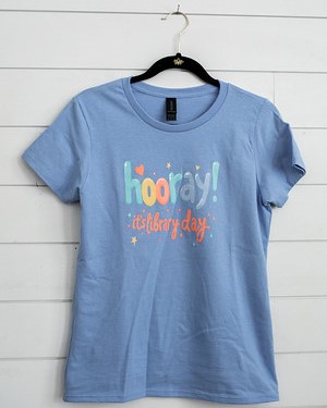 This tee shirt is adorable! Absolutely love the V – neck! It elevates it above a regular tee shirt. Love the text and the lettering. I have laundered it multiple times already and it comes out of the wash looking great!